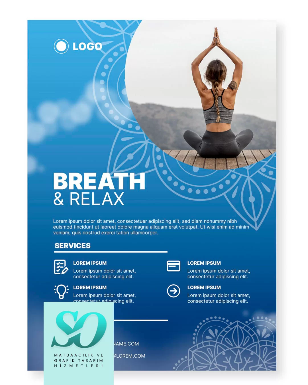 Yoğa veya Meditasyon merkezleri için yüzlerce hazır tasarımlar arasından birini seçebilir veya SO Matbaa Grafik Tasarım bölümümüz sizler için en güncel ve yeni Broşür Tasarımlarını yapacaktır. İster A4, isterseniz A5 veya A6 boyutlarında broşür bastırmak için en uygun fiyatları sunan SO Matbaa grafik tasarımda da iddalı hazır veya yeni tasarımlarıyla sizlerin hizmetindedir.